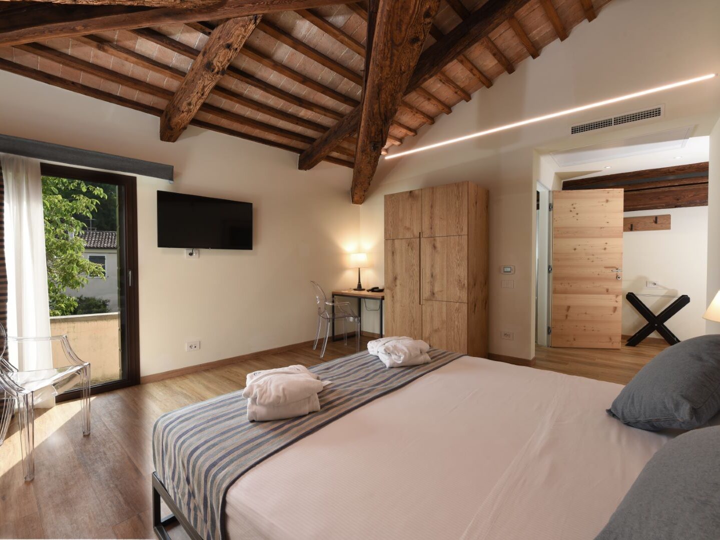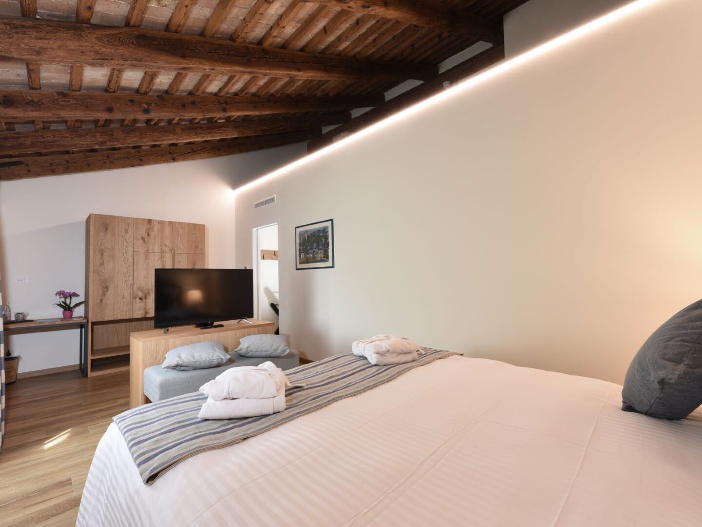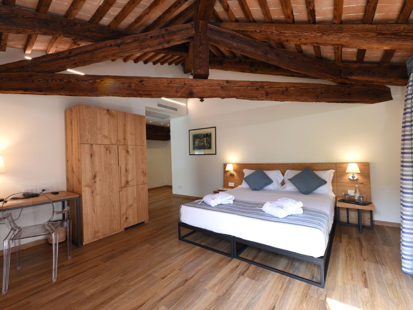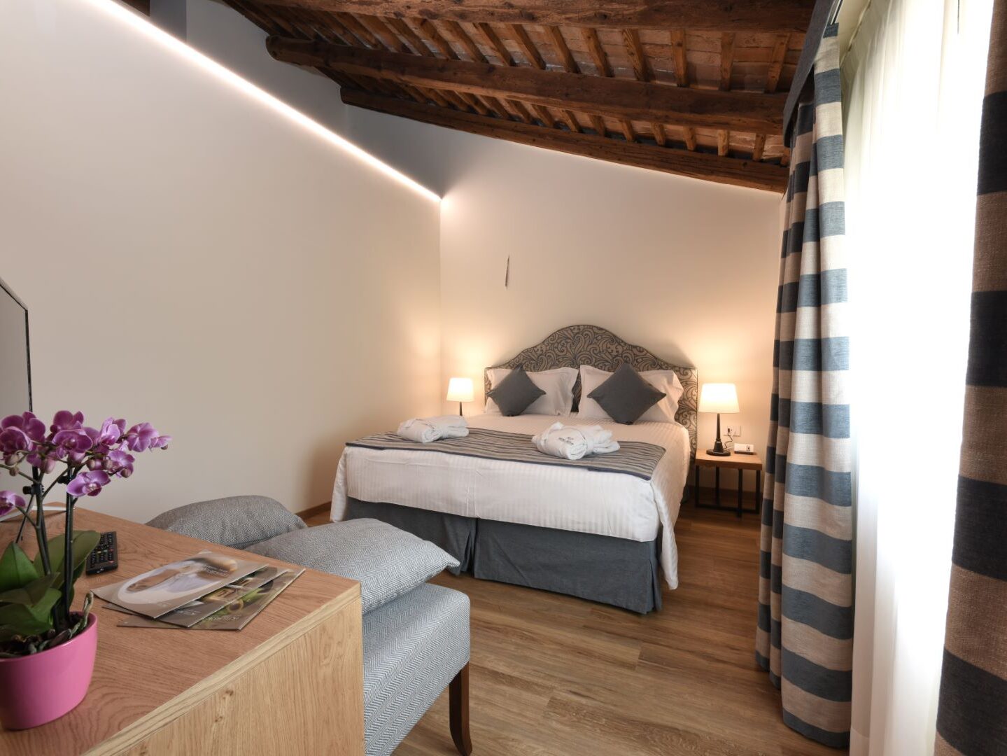 Lassen Sie sich in unseren eleganten Komfortzimmern im modernen Villenstil der Riviera del Brenta verwöhnen. Diese anspruchsvollen und komfortablen Zimmer mit ihren eleganten Holzbalken bieten die richtige Umgebung zum Entspannen und Erholen.
